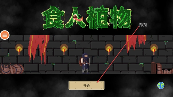 打开食人植物游戏界面后,能看到界面里的养育标识,点击下方的开始按钮,就能启动该游戏的游玩流程。
