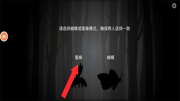 后续在模式选择界面,点击红色箭头所指的蜜蜂选项时,需和另一角色的选择保持一致,以此满足双人选择统一的剧情要求。