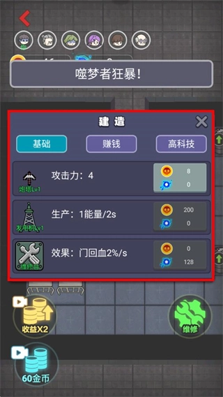 除了升级床位和大门,还可以在房间内的其他区域自行搭建防线,能够依据猛鬼的进攻节奏来调整防线的布局,借助合理规划防御设施来提高生存的概率以及对战的优势。