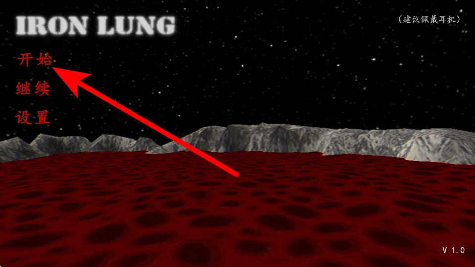 进入游戏主界面后,点击红色箭头所指的开始选项,即可启动游戏的探索流程,这是进入游戏核心玩法的关键步骤。