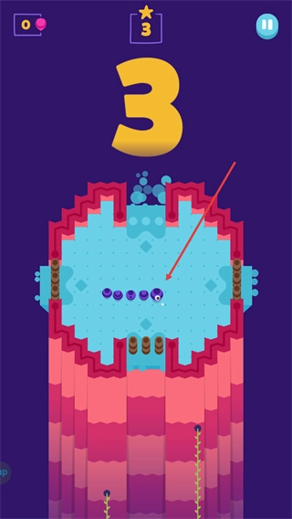 持续收集紫色道具,让蛇身变得更长,把关卡分数提升到3分。