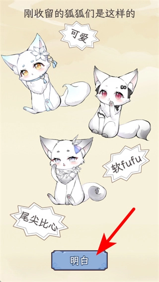 进入游戏剧情介绍界面后,点击红色箭头所指的“明白”按钮,即可关闭当前提示弹窗,这是推进游戏流程的关键操作。