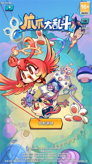 进入爪爪大乱斗的启动界面,查看适龄提示等相关信息后,点击界面上的开始游戏按钮就能进入游戏了。