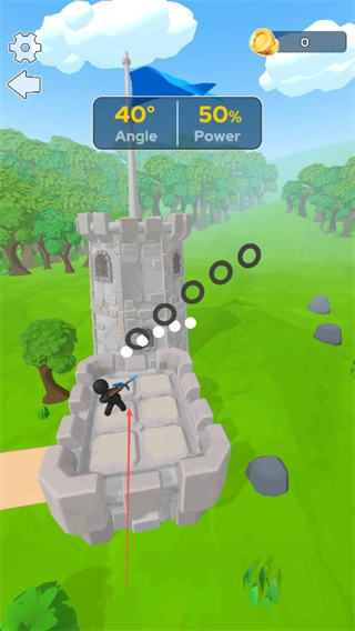 把Angle调整到40°、Power设置为50%,做好发射箭矢的准备。