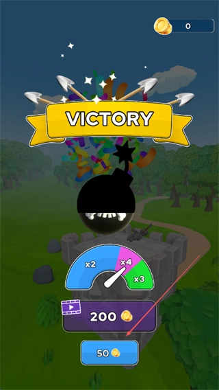 战斗获胜后会弹出VICTORY界面,点击该界面即可领取50金币的奖励。
