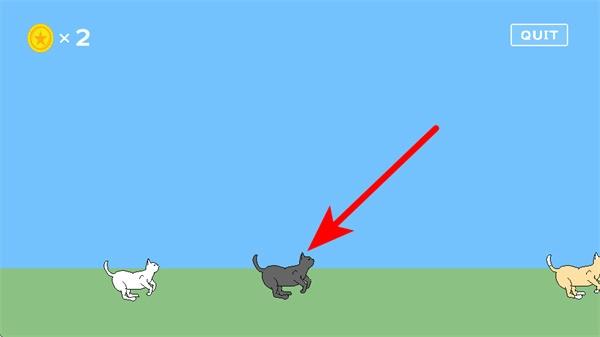进入游戏后,点击红色箭头所指的黑猫区域,以此触发角色切换或互动,这是开启跑酷流程的关键操作。
