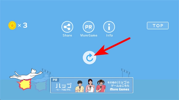 关卡结束后,按照红色箭头的提示操作,点击重置按钮重新启动游戏,继续挑战跑酷关卡。