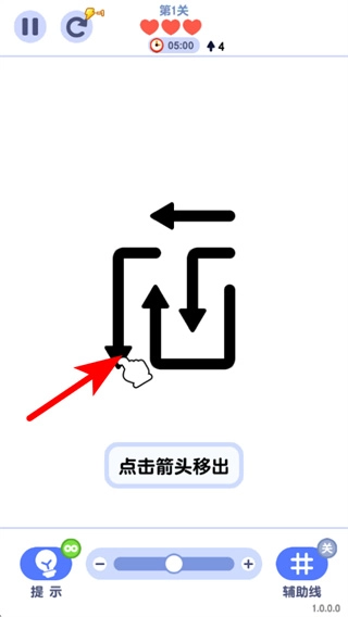游戏里,按照红色箭头的指引,逐个点击剩下的箭头标识,顺着路径顺序一步步把所有箭头都移除。
