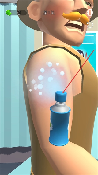 处理完刺后,用蓝色喷雾工具护理肩膀区域,完成这一步患处处理即可推进关卡。