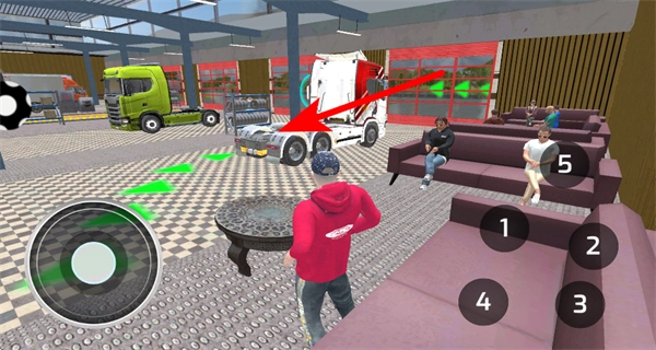 靠近卡车后,需点击弹出的上车标识,以切换到卡车的驾驶操作视角。