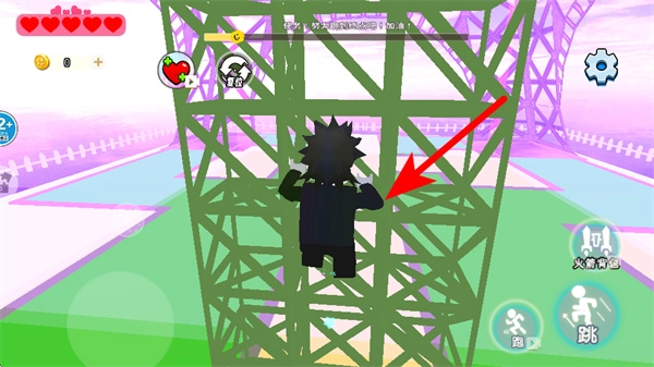 请紧跟红色箭头的指引方向,操控角色攀爬场景里的铁塔框架等结构;借助跳跃按钮来辅助调整角色的位置,从而顺利通过攀爬类的障碍路段。
