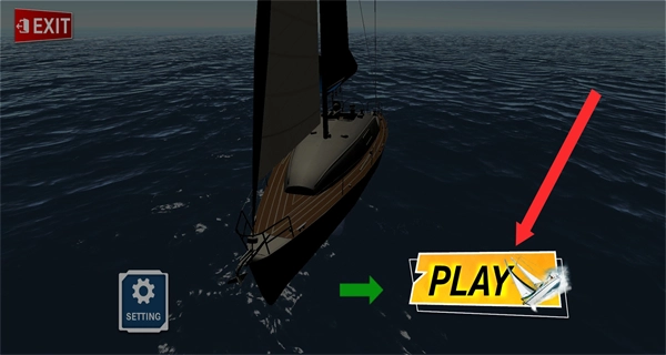 在帆船模拟器游戏的主界面中,点击PLAY按钮,即可进入帆船驾驶的游戏场景。