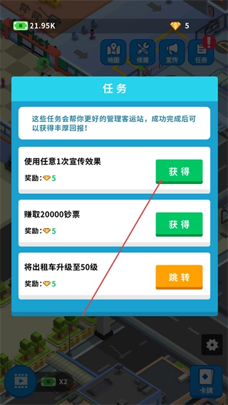 回到任务界面,点击获得领取宣传任务的奖励钻石。