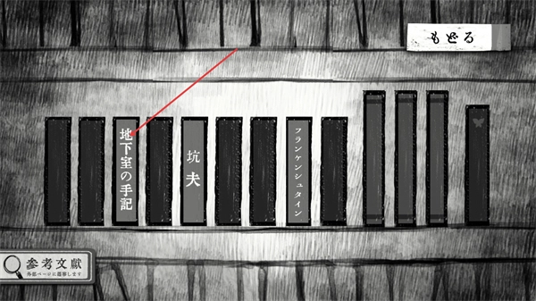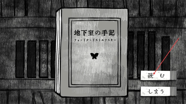 进入读书界面的书架后,在书架上找到《地下室的手记》这本书,之后可以通过与它互动来获取游戏相关的线索。