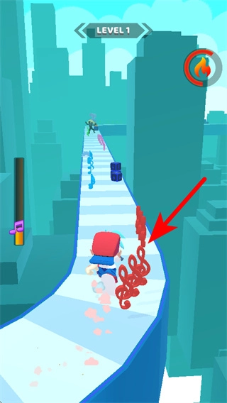 按照箭头的指示来操控角色朝着目标方向移动,靠近关卡终点处的对手,从而完成跑酷关卡的最终挑战目标。