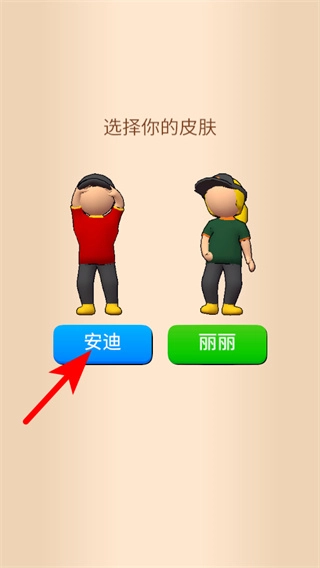 进入游戏界面后,点击安迪按钮来选定角色皮肤,这是进入游戏的关键操作,只有准确点击才能进入清洁关卡场景。