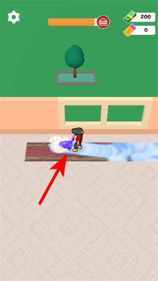按照红色箭头的指示继续操作吸尘器,把剩下的垃圾清理干净,另外要收集场景里的金币道具,这样能增加关卡的收益。
