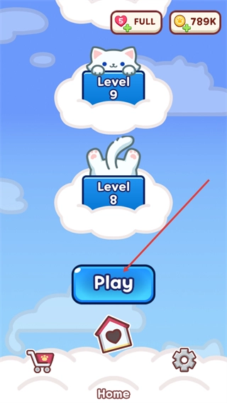 这是游戏的关卡选择界面,目前已解锁到第九关,你只需点击界面上的Play按钮,就能进入相应关卡开始游戏。