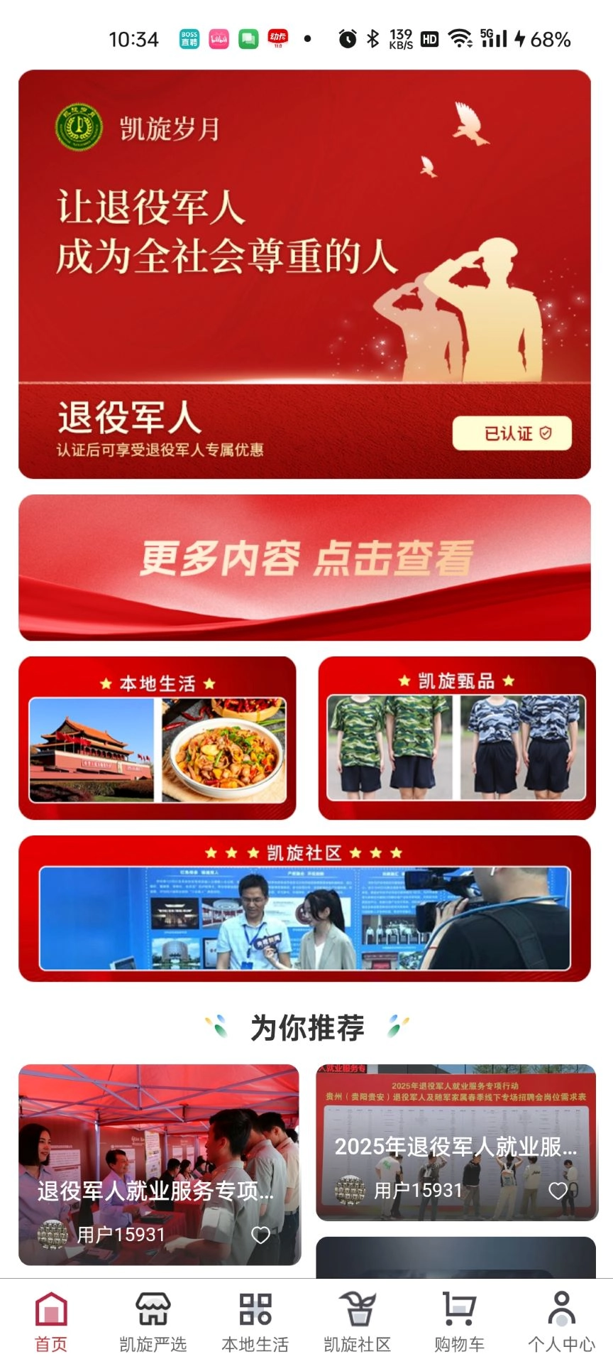 凯旋岁月作为聚焦退伍军人及其家庭需求的综合性服务平台,致力于为用户带来多元化的体验。通过整合线上线下资源,构建起融合购物、社交与公益功能的生态体系。用户既能在平台内选购商品,也可参与各类线下活动,深化与战友间的联结。此外,平台设有专属认证服务,保障用户身份真实可靠,以此推动社区内更紧密的互动与交流。