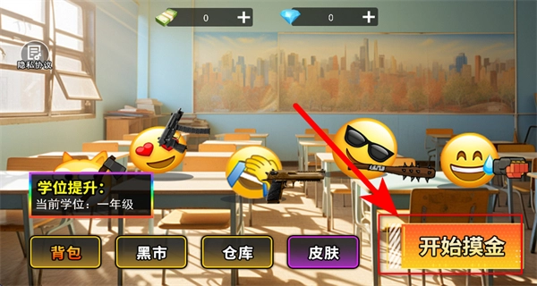 在《校园摸金2》的游戏主界面,点击“开始摸金”按钮,即可进入校园摸金的核心玩法场景。
