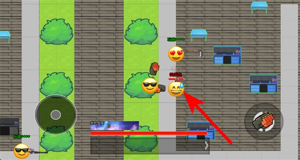 进入场景后,操控角色在校园区域移动,攻击场景内其他带血条的表情形象角色。