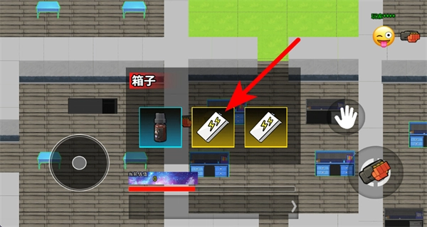观察地形后移动到场景里的交互区域,也就是图中箱子所在的位置,点击这个区域就能触发互动操作。