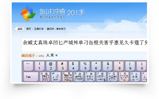 如果金山打字通不能很好地帮你学习五笔,下载五笔打字通绝对没错。这个软件现在可以免费在线使用,可以不用注册就在线使用。它应该是目前最实用的的五笔打字练习软件了!