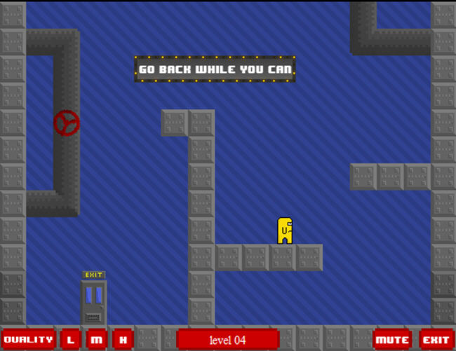 秘密逃生门是款利用FLASH制作的休闲小游戏,游戏的玩法很简单,你要控制一个黄色的人形生物,每一个关卡中都会提示你做出各种各样不同的事情,比如第四关是尽可能回到原来的地方,第二关按下↓让主角跳的更高,第三关出现了红色的墙,总之每一关都有不同的惊喜在等着你,需要玩家积极开动脑经去解决这些设置好的难题。【攻略】