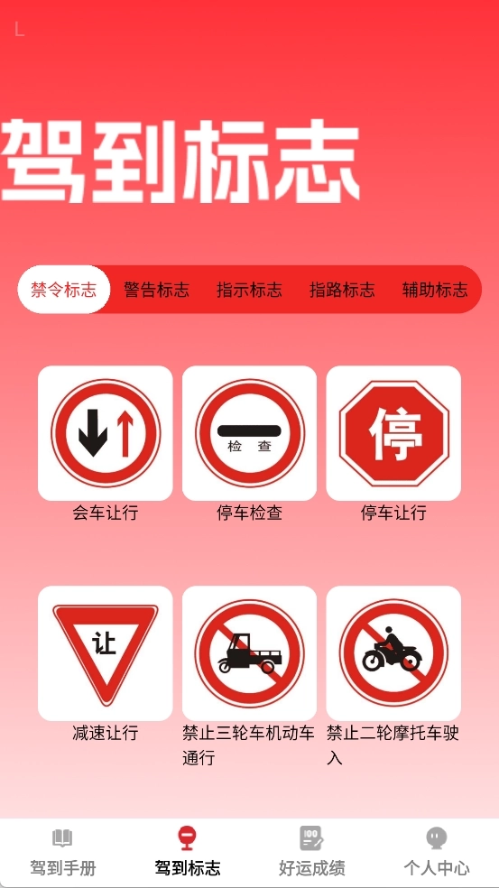 2、驾到标志内收录了各类不同的标志,方便大家学习认识这些标志。