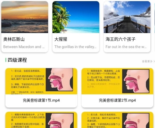2、首页会推送各类英文绘本和课文阅读学习资源,里面的词汇量十分丰富。