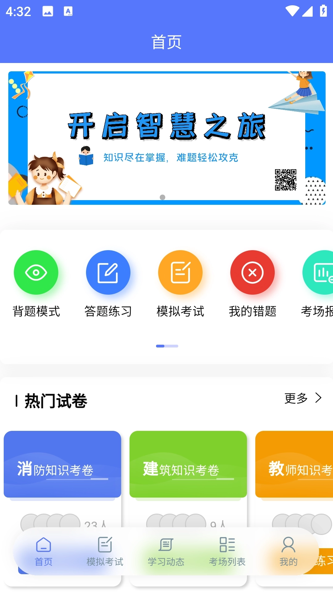 2、在首页能够看到多种练习模式,其中涵盖了背题、答题、模拟考试等类型。