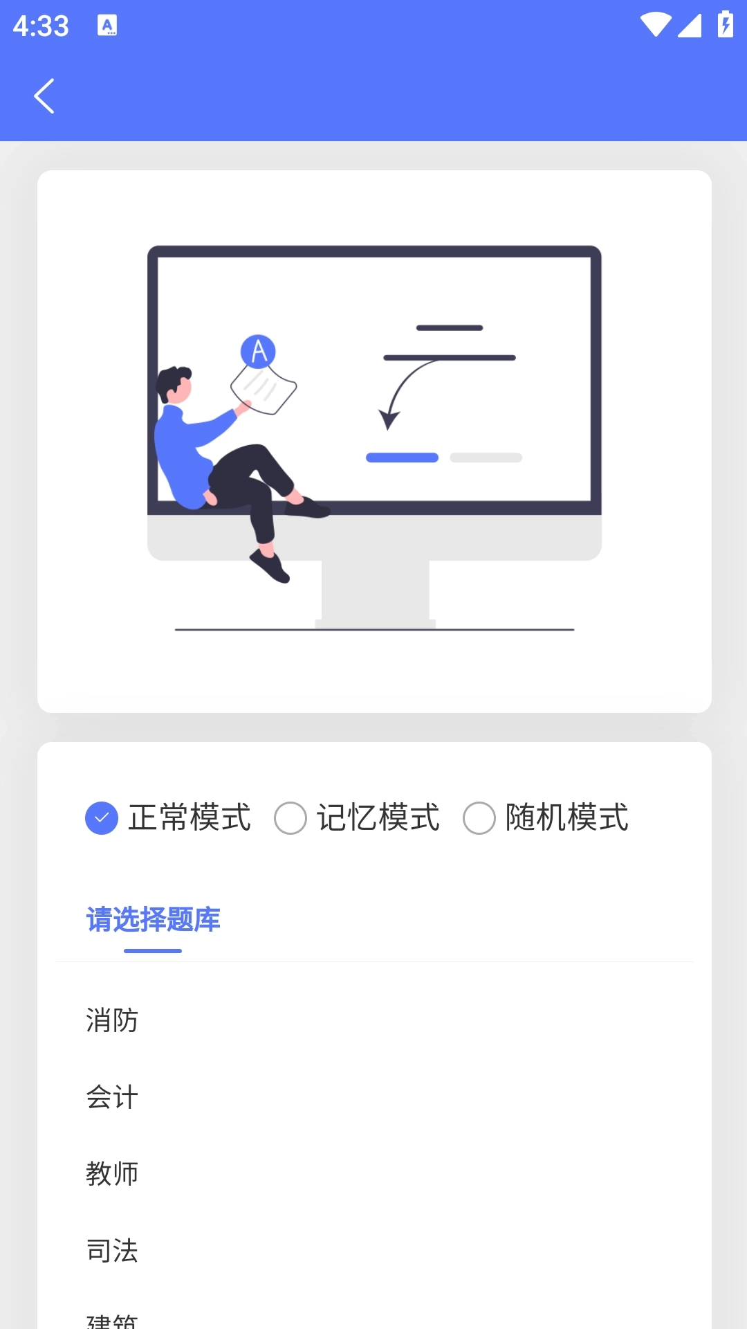 3、挑选自己所需的模式进入,接着选择对应的职业题库,即可开启学习练习。