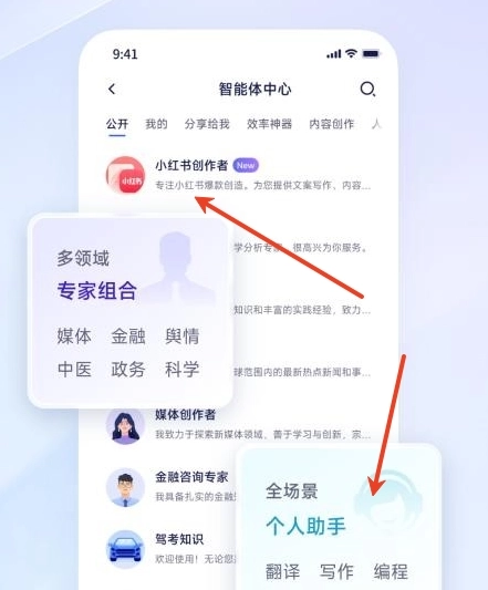 2、进入首页后,你就能看到各类智能体类型,方便你及时在线挑选。