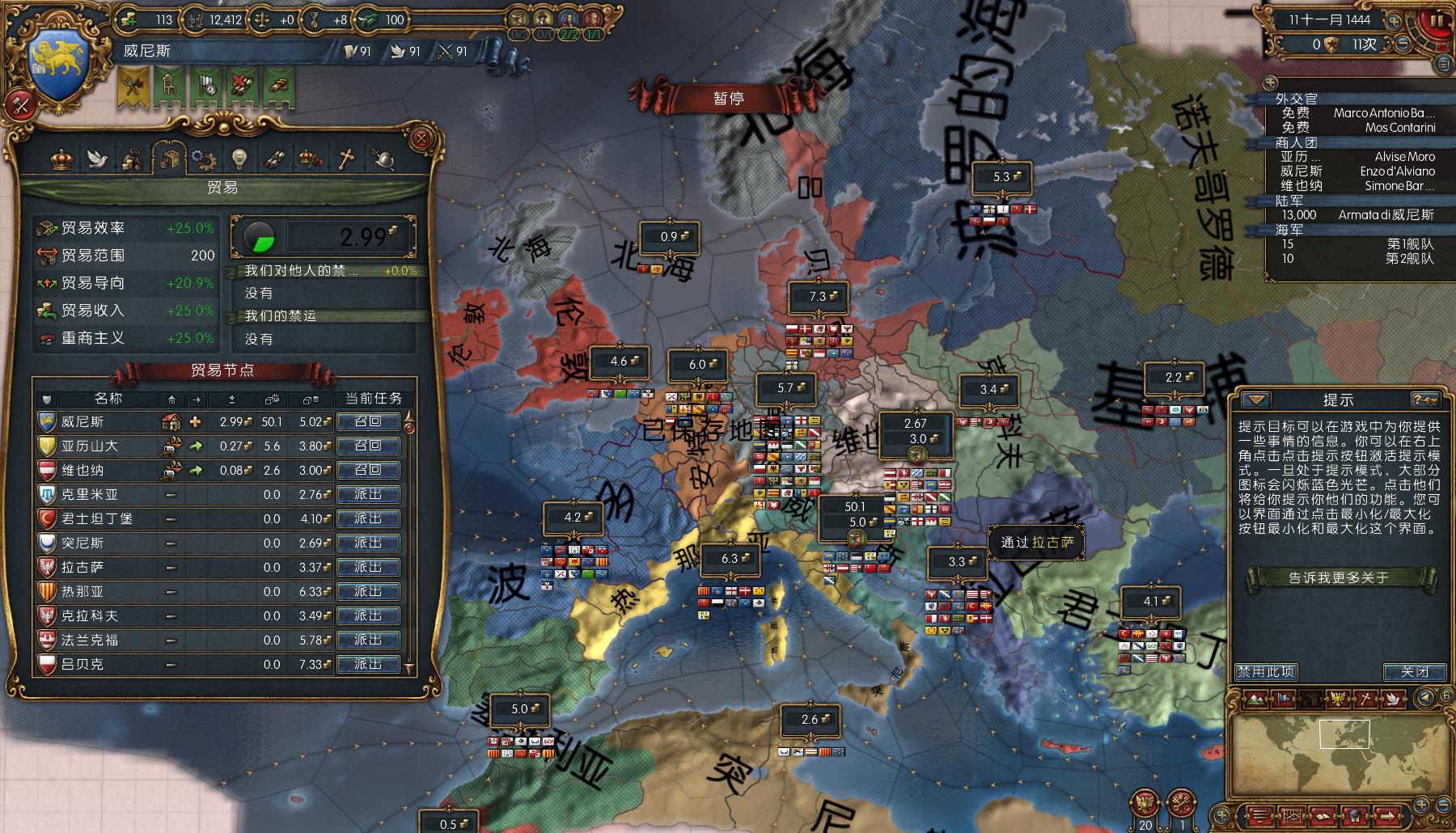 全球贸易百分比,你海外殖民地的贸易节点,没有箭头和本国默认节点直接相连,也可以放商人增加贸易量