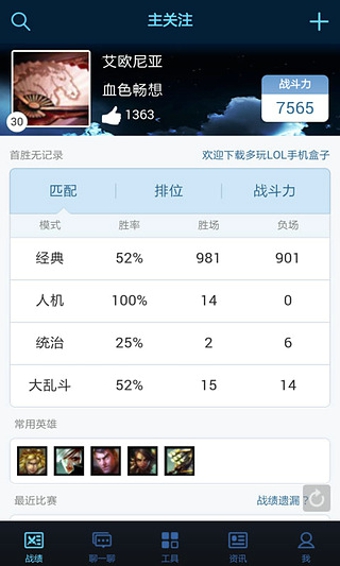【查战绩】让你随时随地查看战斗力及战绩详情;