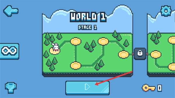 在【WORLD-1-STAGE-1】界面,点击箭头按钮进入关卡后,操控兔子在地图里移动,目标是收集道具。