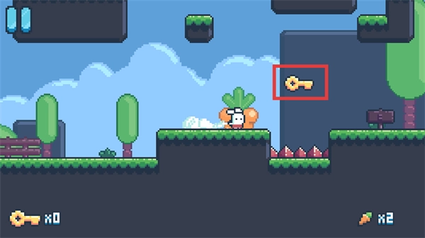 继续操控兔子移动,收集场景里的【钥匙】道具,与此同时要留意避开陷阱,推动关卡向前进展。