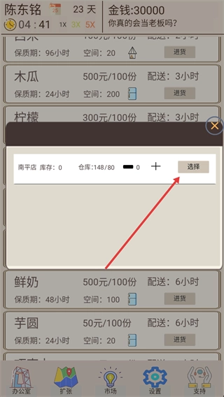 点击【选择】按钮来规划食材的进货数量,以此把控成本并合理利用库存空间。