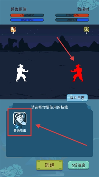 战斗时和【敛闲树】交手,既可以选择用【普通攻击】来输出伤害,也能选择逃跑,或者开启5倍速度来调整战斗节奏。