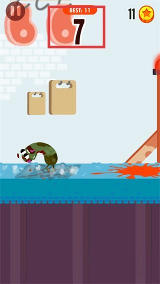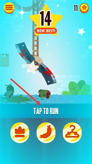 得分达到【13】时,要躲开带血的刀具障碍,利用场景里的元素来调整奔跑路线,逐步提高成绩。