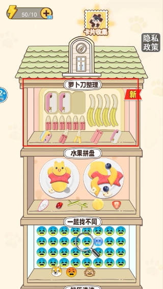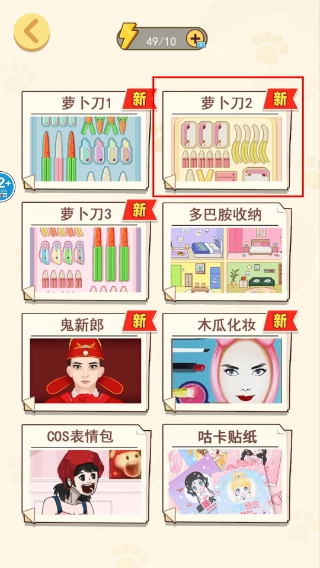 选择【萝卜刀整理】关卡,开启萝卜刀收纳挑战。