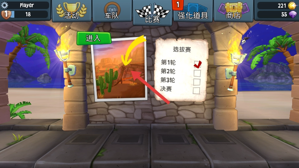 点击【进入】按钮,选择选拔赛第1轮,开启比赛。