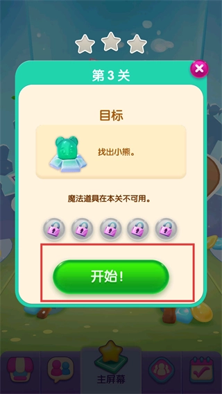 进入【第3关】,目标是找到小熊,点击绿色的【开始!】按钮就能开启关卡。