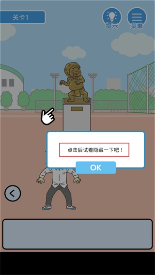 点击【OK】按钮关闭提示,接着尝试点击【雕像】所在区域来实现隐藏,以此避开可能存在的视线检测。