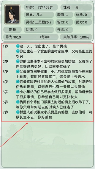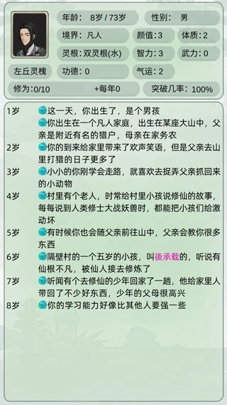 点击【开始游戏】按钮即可踏入修仙世界,开启你的轮回修仙之旅,后续还能自由配置属性,体验多样的人生经历。