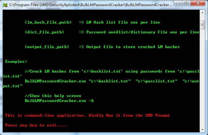 大部分LM密码破解非常容易使用的工具。因为它是基于命令行工具,因此你必须启动它从命令提示符(用于cmd . exe)这是简单的使用信息