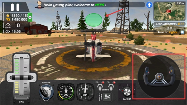 你可以借助右侧的【飞行操控杆】来操控直升机飞行,然后前往场景里由【绿色圈】标记的目标区域。