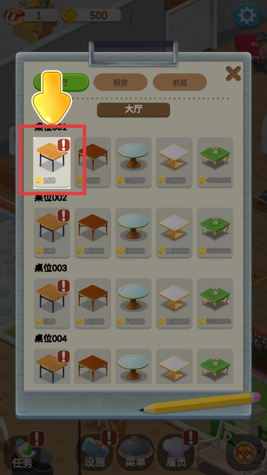 厨房和前庭所需的设备能够通过对应的面板进行购买,要依据店铺的实际需求以及资金状况来合理配置这些设备,以此全面提高店铺的评分和服务能力。
