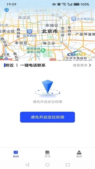 1、完成安装并进入培训模块后,系统会依据地理位置信息,主动为用户推荐周边的优质培训机构