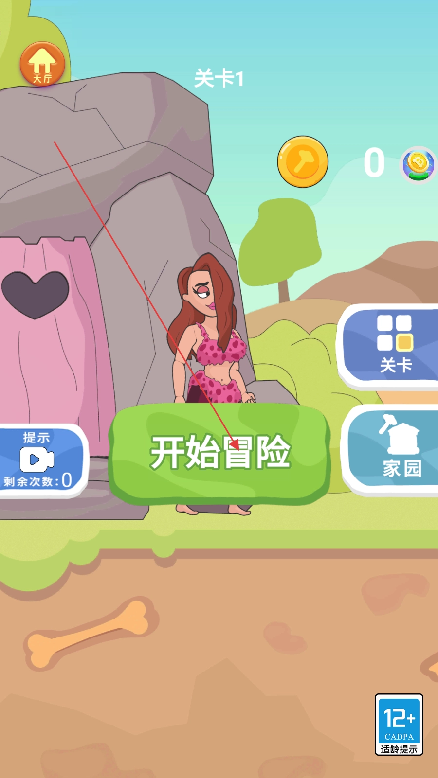 打开游戏《原始人鲍勃》,进入关卡1后,点击界面上的【开始冒险】按钮。